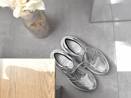 0001 Roundtoe Lace Up Highttech LeatherSneakers AL2500SN Silvercombi 木型 . C1699