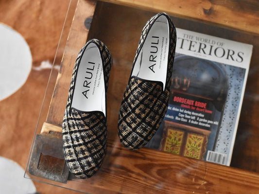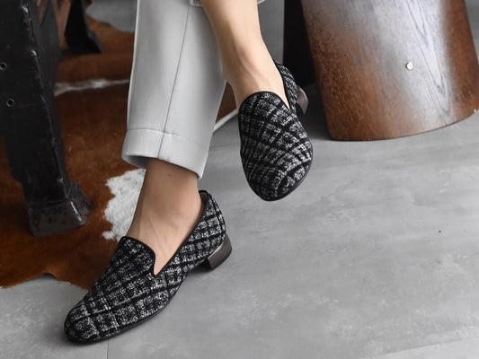 0001 イタリアンチェックツイードオペラシューズ AL2520K Graycheck 木型 . C1813