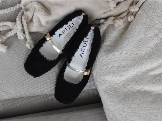 0001 スクエアモケモケメリージェーンシューズ AL2521K Blackmokemoke 木型 . OGA