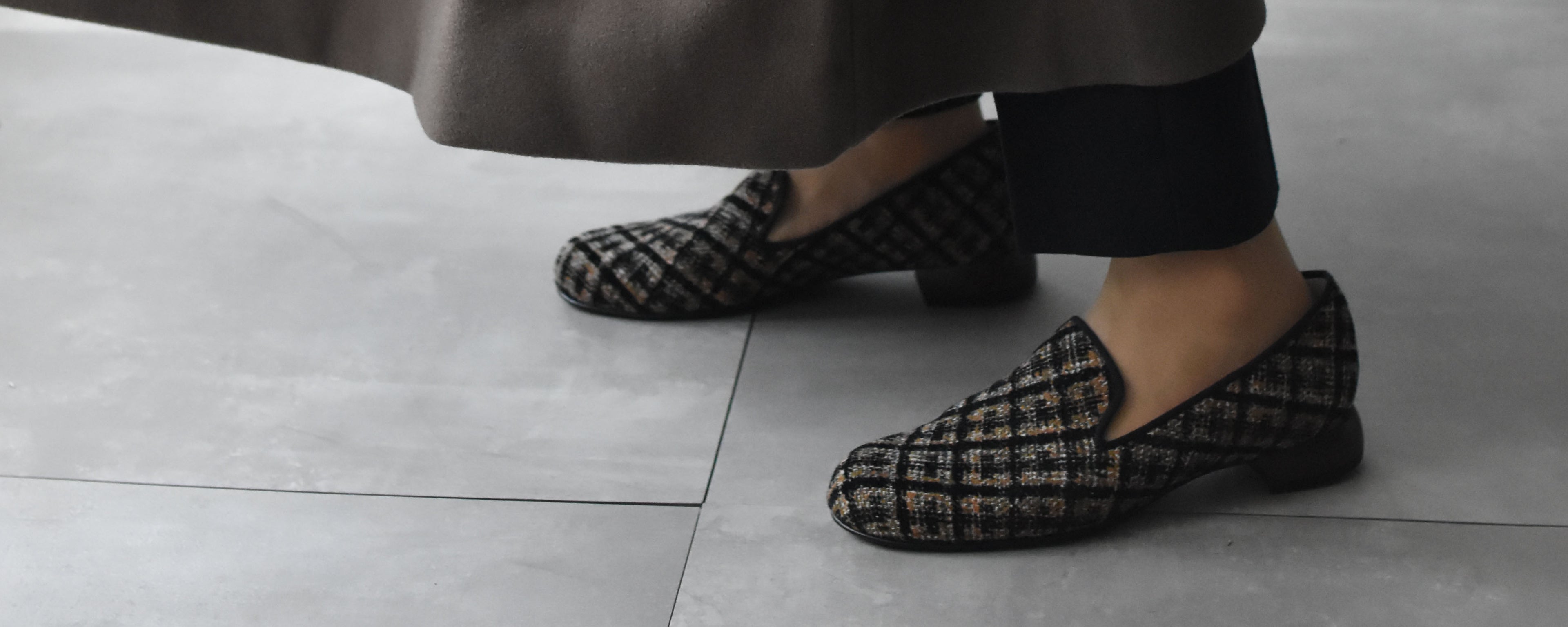 0001 イタリアンチェックツイードオペラシューズ AL2520K Camelcheck 木型 . C1813