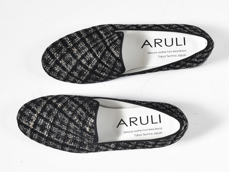 0001 イタリアンチェックツイードオペラシューズ AL2520K Graycheck 木型 . C1813