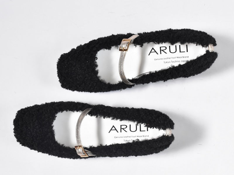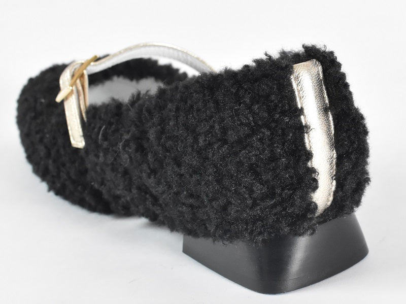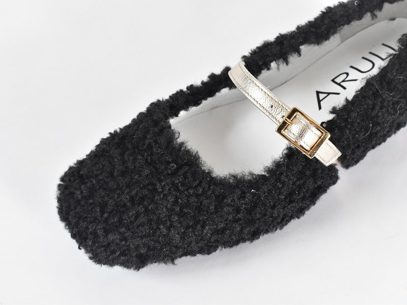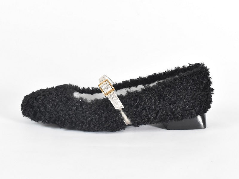 0001 スクエアモケモケメリージェーンシューズ AL2521K Blackmokemoke 木型 . OGA