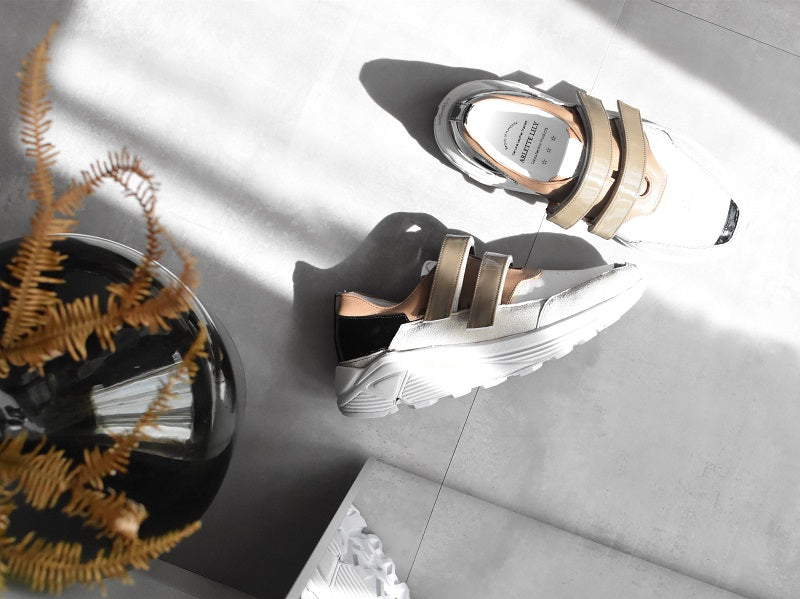ARULIの人気スニーカーラインである勝手に歩いてくれるような感覚になるローリンゲイトシステム設計のソールを使ったハイテクレースアップレザースニーカー。